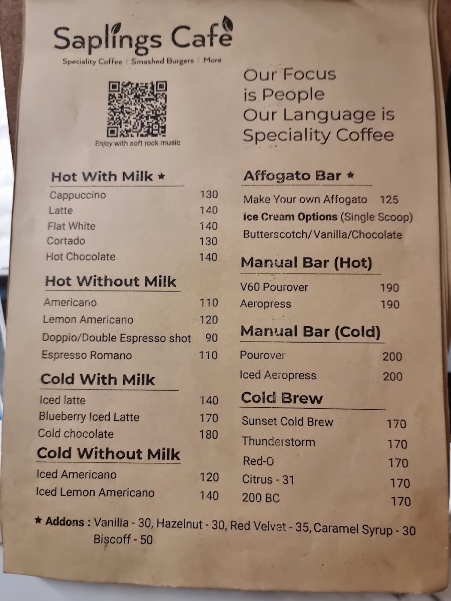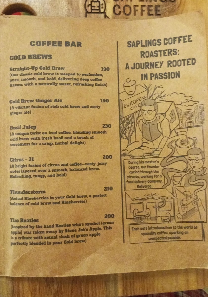 Saplings Cafe - Saplings Coffee Roasters Menu