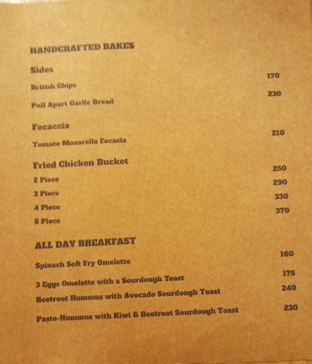 For food, there are handcrafted baked goods and light bites designed to accompany the beverages. This category includes savory items like Sourdough Sandwiches, Sourdough Bread with Chilli Cheese Oil, and sides such as British Chips and Pull Apart Garlic Bread. There are also a variety of sandwiches and burgers, including the Smokey Joe Smashburger, British Chips and Chicken Smash Burger, and a Veg Cheese Burger. Pastries such as Biscoff Cheese Croissant, Almond Croissant, and Pineapple Doughnut add sweet options.